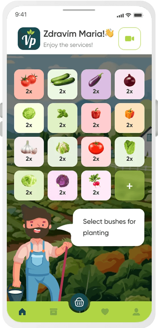 Když si vyberete zeleninu přes naši aplikaci, my se postaráme o všechny úkoly: výsadbu, péči, zalévání a sklizeň. Můžete sledovat vývoj „svého“ záhonu přes aplikaci a rozhodnout se, zda si úrodu sklidíte sami, nebo si ji necháte doručit domů.